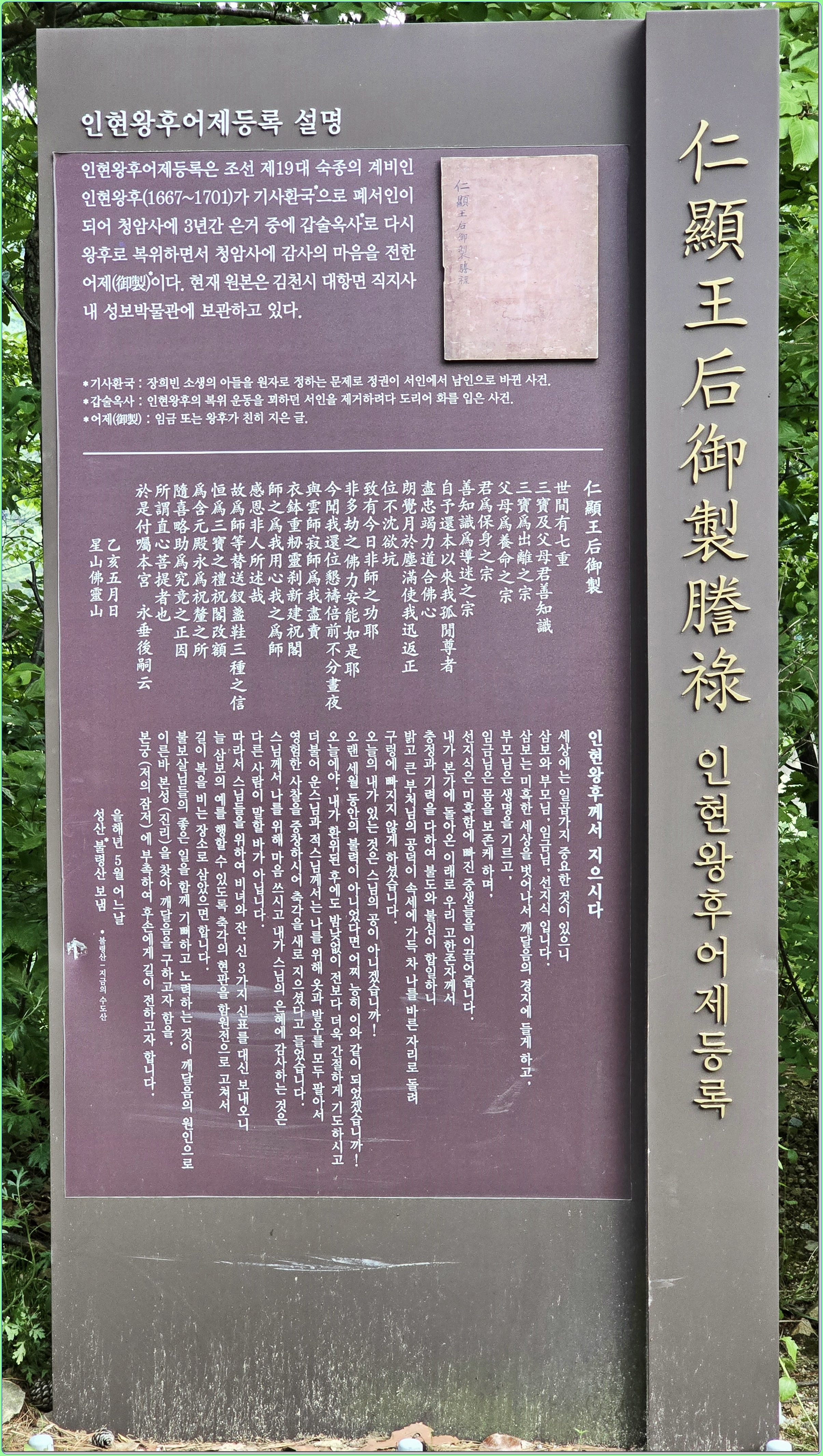 그후 인현왕후는 청암사에 서찰과 선물을 보내 감사의 뜻을 전하였다.