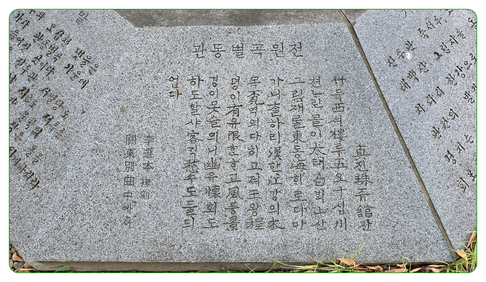 ‘해선유희지소(海仙遊戱之所)’는 현종 3년(1837)에 부사 이규헌(李圭憲)이 쓴 것이라 한다.
