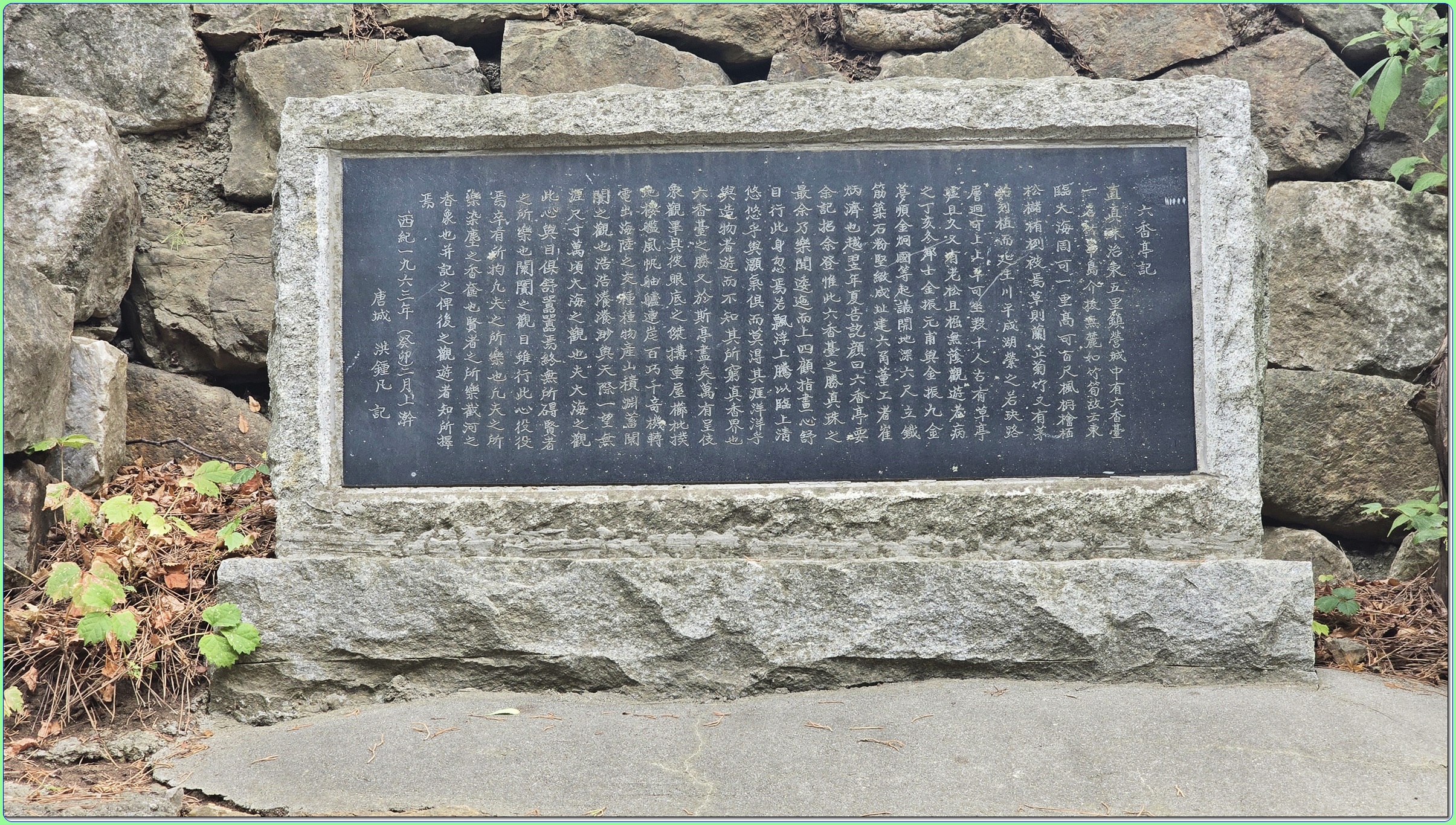육향산에는 육향정(六香亭) 바로 앞에는 미수(眉叟)허목(許穆)[1595~1682]의 ‘척주동해비(陟州東海碑)’가 있다.