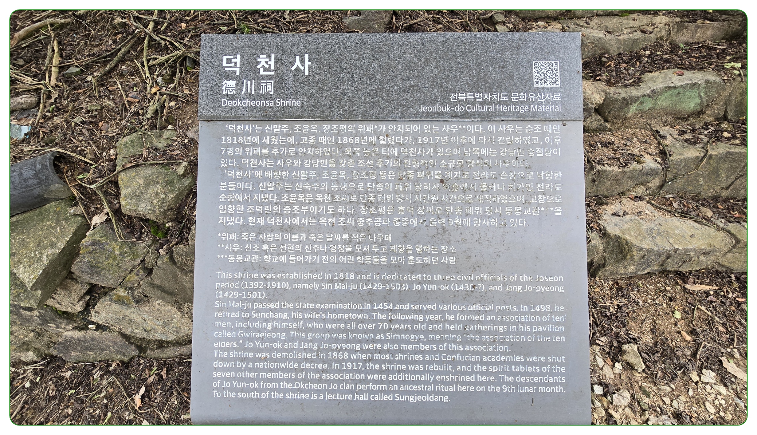 고창-덕천사(德川祠),귀래정 신말주(歸來亭 申末舟),둔세암 조윤옥(遯世菴 趙潤屋),둔암 장조평(遯菴 張肇平),부장 이윤철(李允哲),주부 안정(安正),현령 김박(金博),건산 한승유(巾山 韓承愈),광은 설산옥(狂隱 薛山玉),처사 설존의(處士 薛存義),취은 오유경(醉隱 吳惟敬)