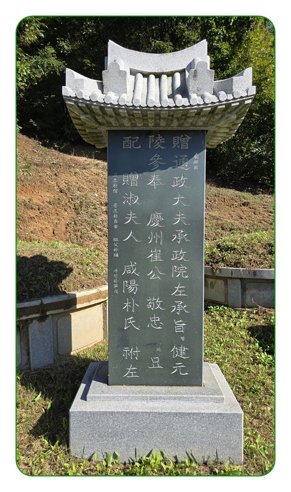 贈通政大夫承政院左承旨行健元陵參奉 慶州崔公敬忠의墓 配贈淑夫人咸陽朴氏祔左