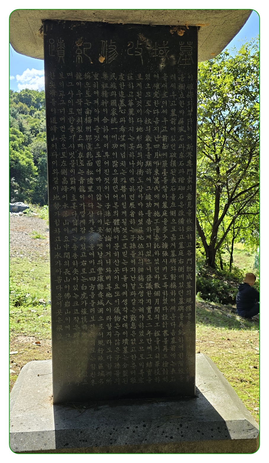 큰 글씨로 깊이 새긴 표석을 세운다면 더욱 오래도록 보존할 수 있다.” 하니 모두 좋다고 하였다.