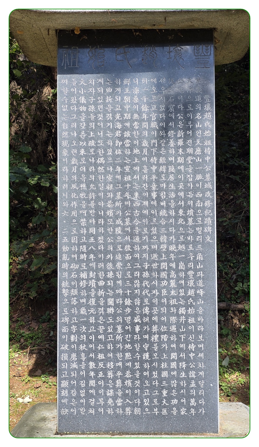豊壤趙氏始祖侍中公墓域改修紀蹟碑文